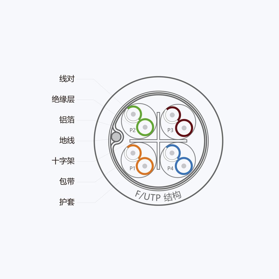 • 采用十字骨架结构有效隔离对绞线对以优化NEXT、