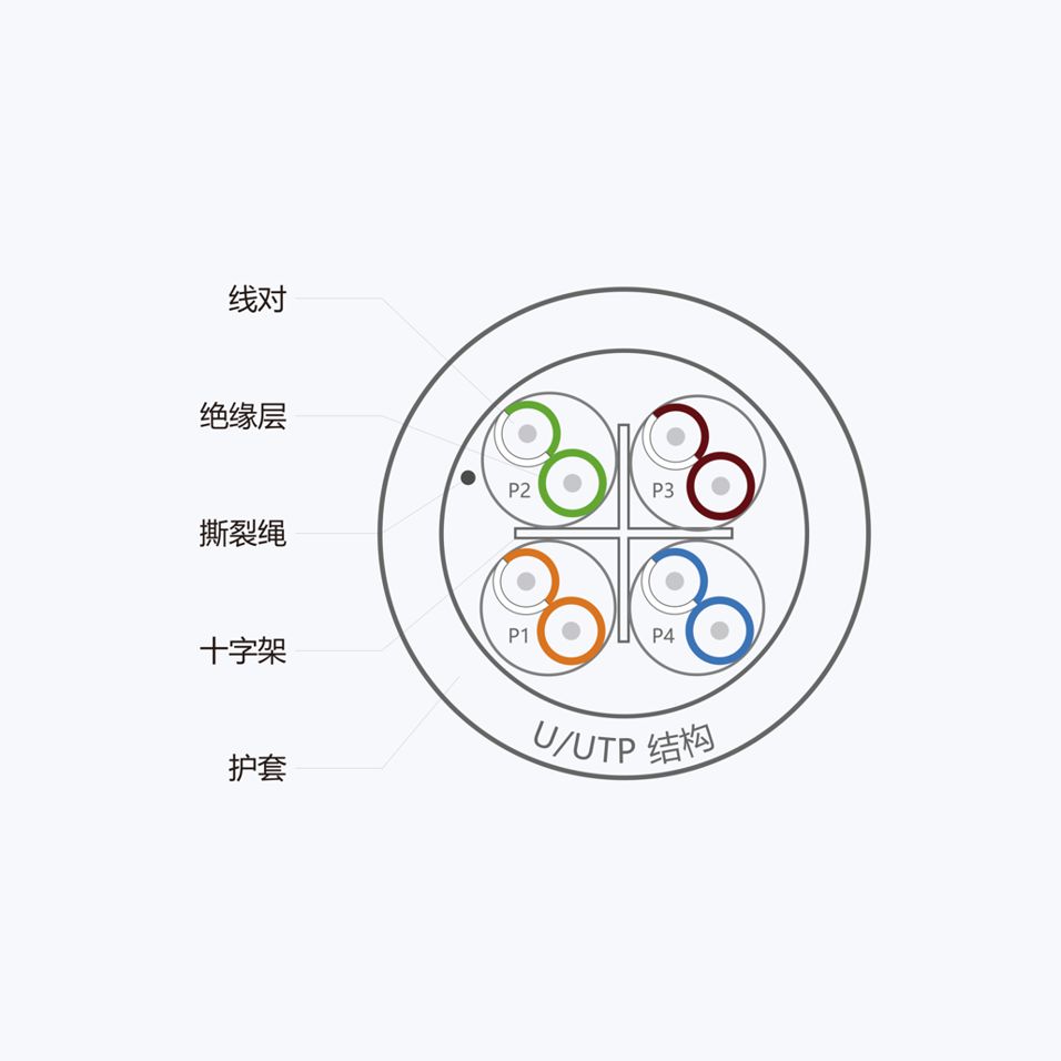 • 采用十字骨架结构有效隔离对绞线对以优化NEXT、