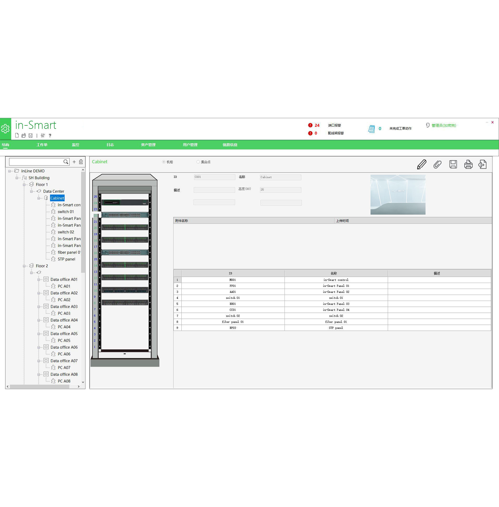 支持管理控制器,智能配线架,交换机和服务器