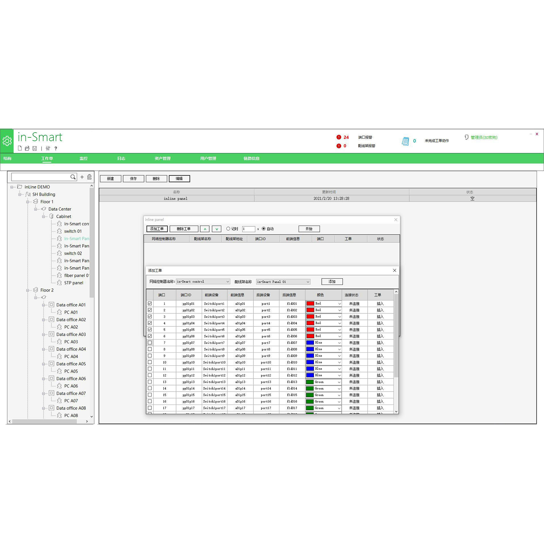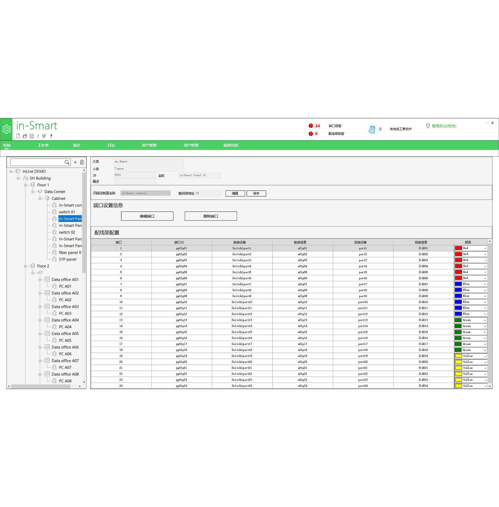 可自定义并显示配线架端口ID标签,以及相邻前后两